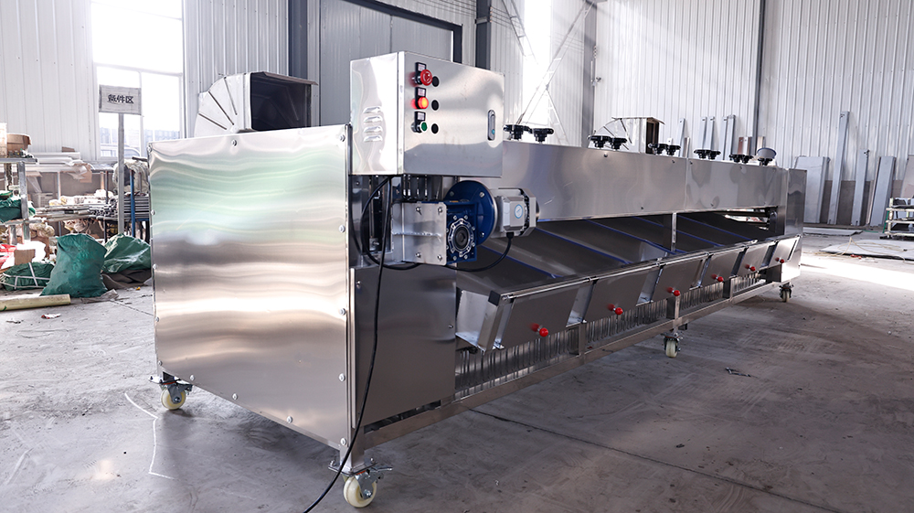 *设备整体分为多段,如第一段为小于15mm物料的分级区,小于15mm的物料会通过第一个出料皮带出料。如第二段为15mm-20mm物料的分级区,15mm-20mm的物料会通过第二个出料皮带出料,以此类推。(分级规格仅供参考,每台分级机的分选规格是根据客户要求定制)