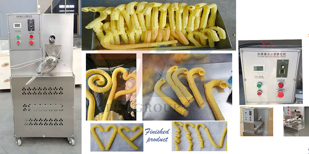 冰淇淋空心管膨化机又名拐杖冰淇淋机、勾勾冰及、蛇形冰淇淋机等。