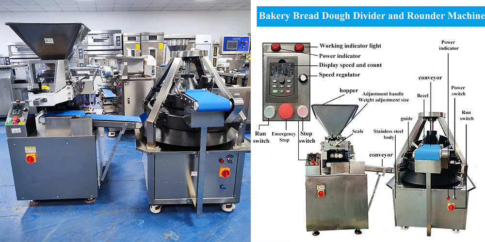 3. 面包面团分割机和滚圆机可同时工作,也可单独工作。