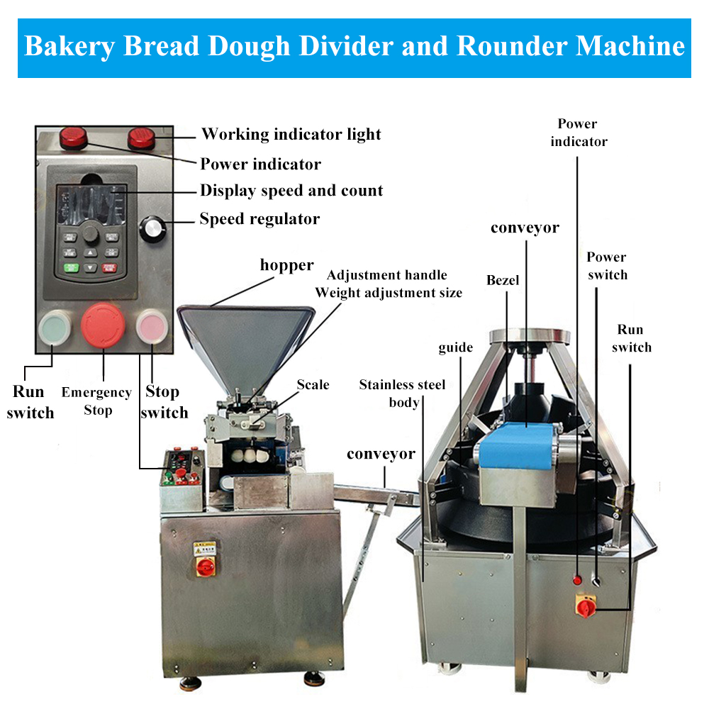 3. 面包面团分割机和滚圆机可同时工作,也可单独工作。